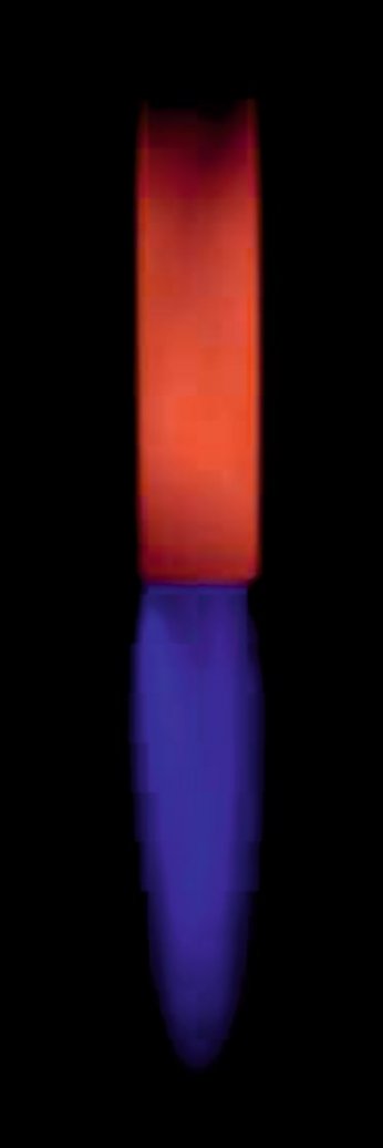Alevin karanlık bir arka plana karşı gösterimi, yanma kalitesini gösterir. Seramik alev borusu, parlak kırmızı olan uzunluğun yaklaşık üçte ikisine kadar parlar. Güce ve lambdaya bağlı olarak impuls 3.5 m'ye kadardır.