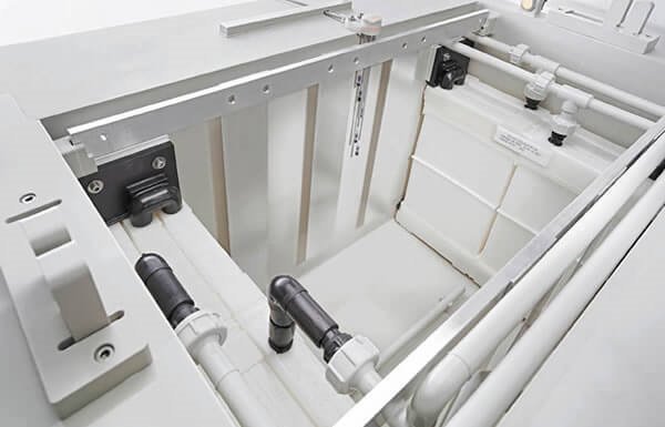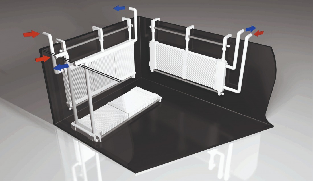 CALORPLAST Plastik banyo ısı eşanjörleri basınçlı su, buhar veya kimyasal ile kolayca temizlenebilir ve böylece uzun bir çalışma süresini garanti edilir.