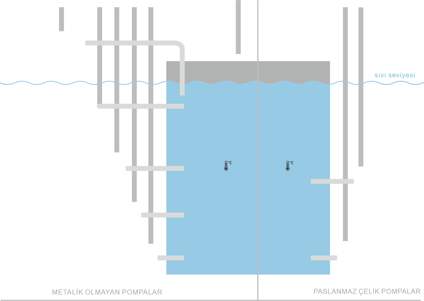 Bu manyetik tahrikli pompaları kendinden emişli çalışma için geliştirdik. Boruları bağımsız olarak havalandırabilirler. Ayrıca, daha derinde yatan kaplardan ortam emmek için de mükemmel şekilde uygundurlar.